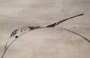 伊藤若冲作 墨絵 「見返り鶴」が新入荷しました。 工房作が多数の墨絵若冲作品で…