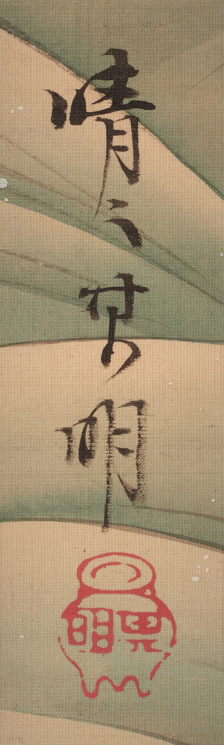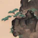 The expression of the “tarashikomi” (a kind of “drizzle”) seen on Mt.Hourai is indescribably exquisite, and the blue-green accents placed here and there add to the charm of the work.