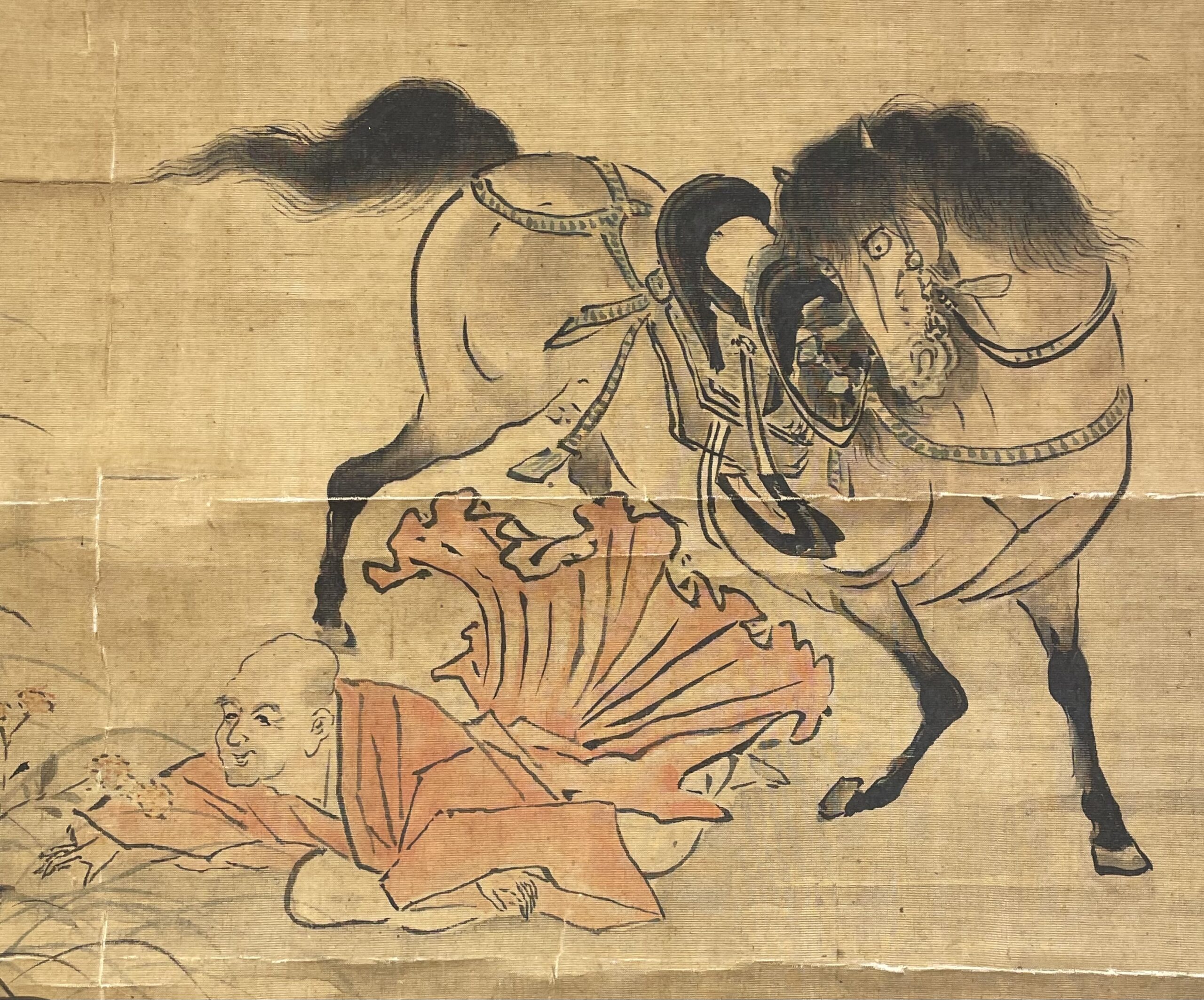 | Title | “Sojo Henjo Falling Off a Horse”/Ink and light color on paper |