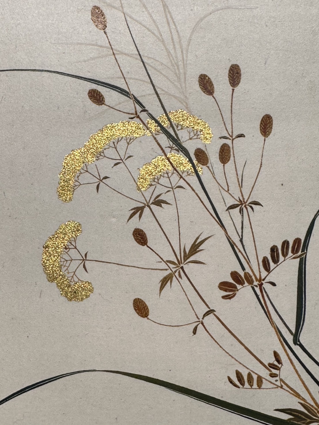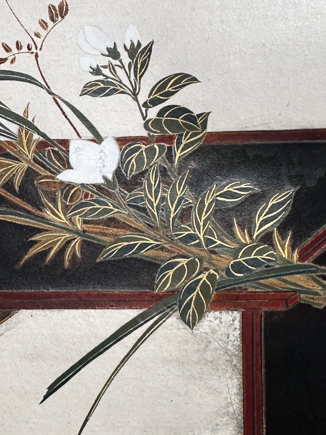 First, let’s take a look at the flowers and grasses on the lacquer cabinet.
