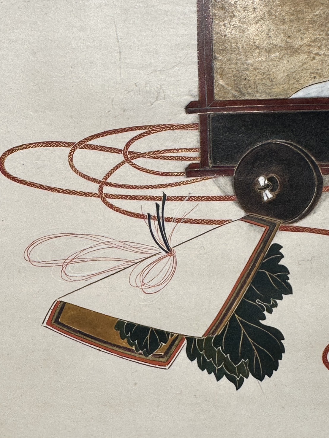 The key to deciphering the title of this work lies in the “Kajinoha kazari” placed in front of the lacquer cabinet.