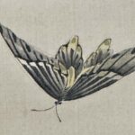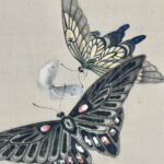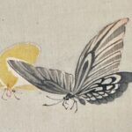 Although a total of 13 butterflies are depicted in this work, not one of them is the same species. Swallowtail butterflies, white butterflies, and blue swallowtail butterflies…… are all carefully depicted. The detailed depictions, almost like an illustrated book, reveal Kazuho’s interest in natural history.
