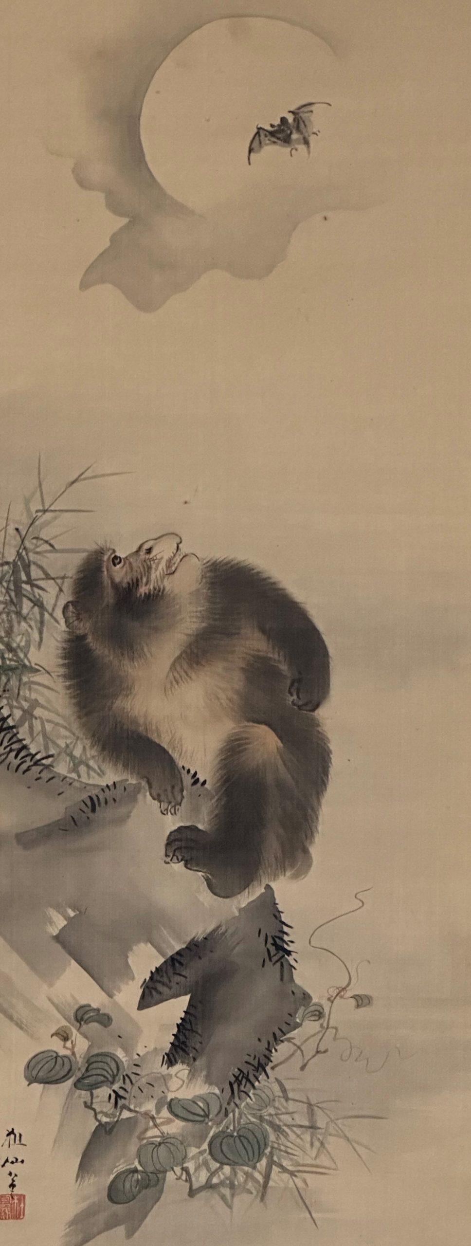 Monkeys have long been cherished as auspicious motifs because the pronunciation of “kou” (猴) is similar to “kou” (侯), meaning a feudal lord. Similarly, bats (bat) are beloved because the pronunciation of ‘fuku’ (蝠) is similar to “fuku” (福), meaning good fortune.