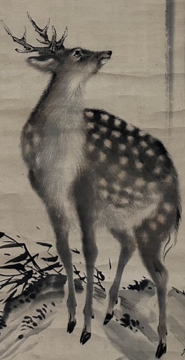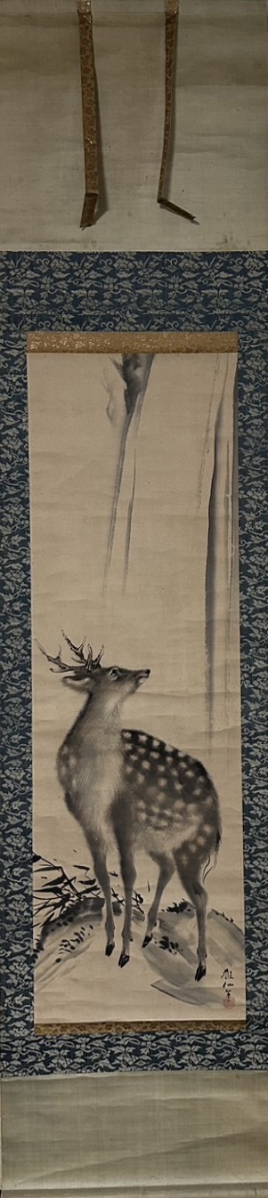 Based on the seal and signature, it is thought that this work was created in the Bunka 4 (1807), shortly after he changed his name from “祖仙” to “狙仙”. The powerful gaze of the stag gazing at the waterfall in the background suggests the spirit of the artist who changed his name and made a fresh start on the occasion of his 60th birthday.