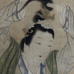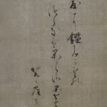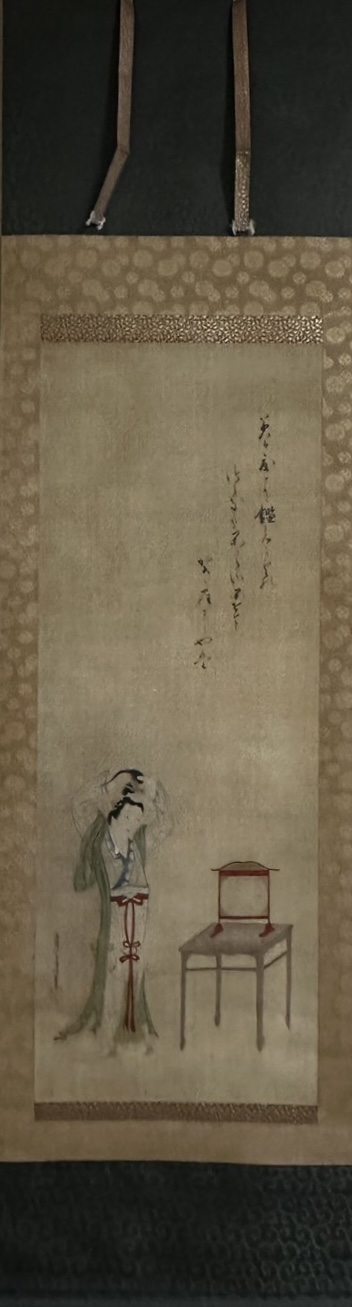 This poem is said to have been written by the mid-Heian period monk Kaien and inspired by Bai Juyi’s poem “Wang Zhaojun, Two Poems No.1”. Wang Zhaojun was a courtesan of Emperor Yuan of the Former Han Dynasty, and is known for the anecdote that she was married off to the King of the Xiongnu in order to pursue a policy of reconciliation. As she gazes into the mirror, her gaze may be focused not on her own beauty, but on the tumultuous fate that her beauty has brought about.