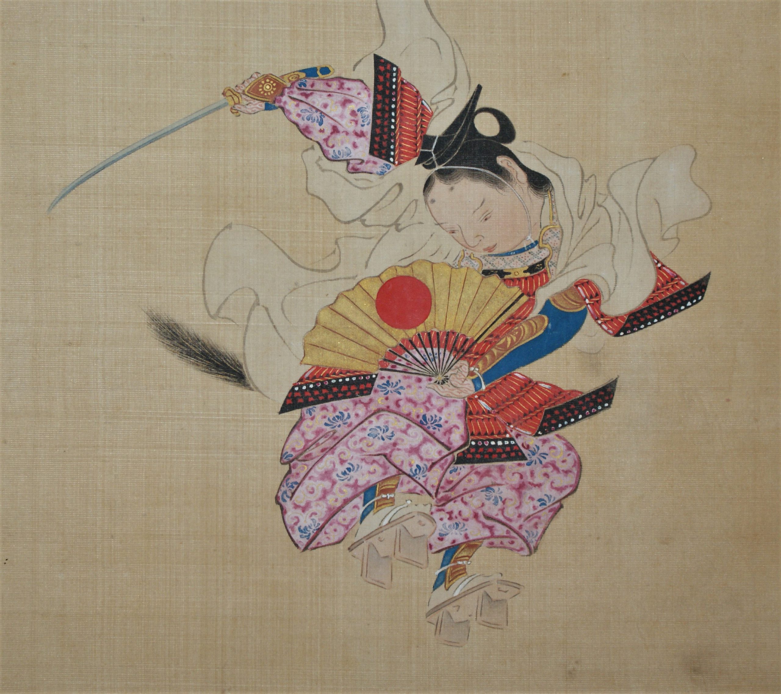 It depicts Ushiwakamaru (Yoshitsune) soaring high and light.