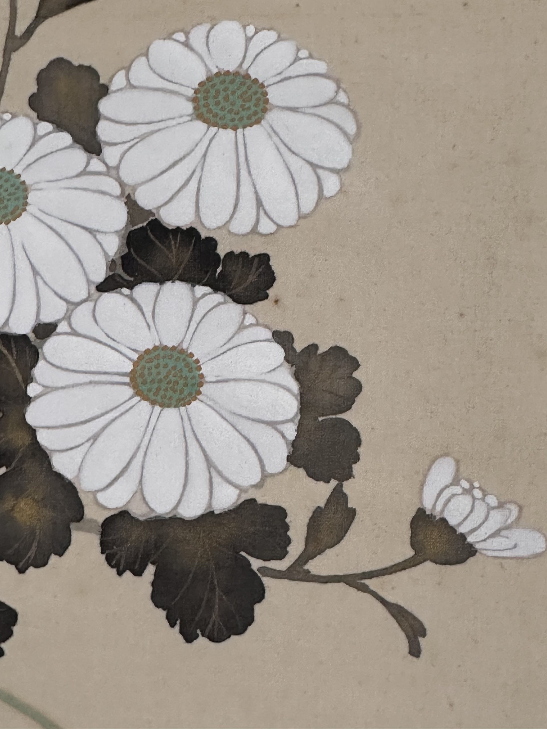 | Title | “Chrysanthemums and Flowing Water”/Color on silk |