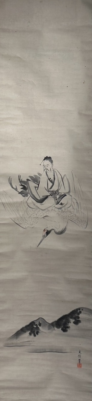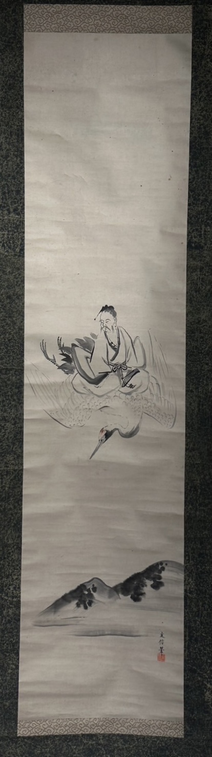 In early modern Japan, the figure of Fei zhang fang riding on the back of a crane, as shown in this work, was often depicted in paintings.