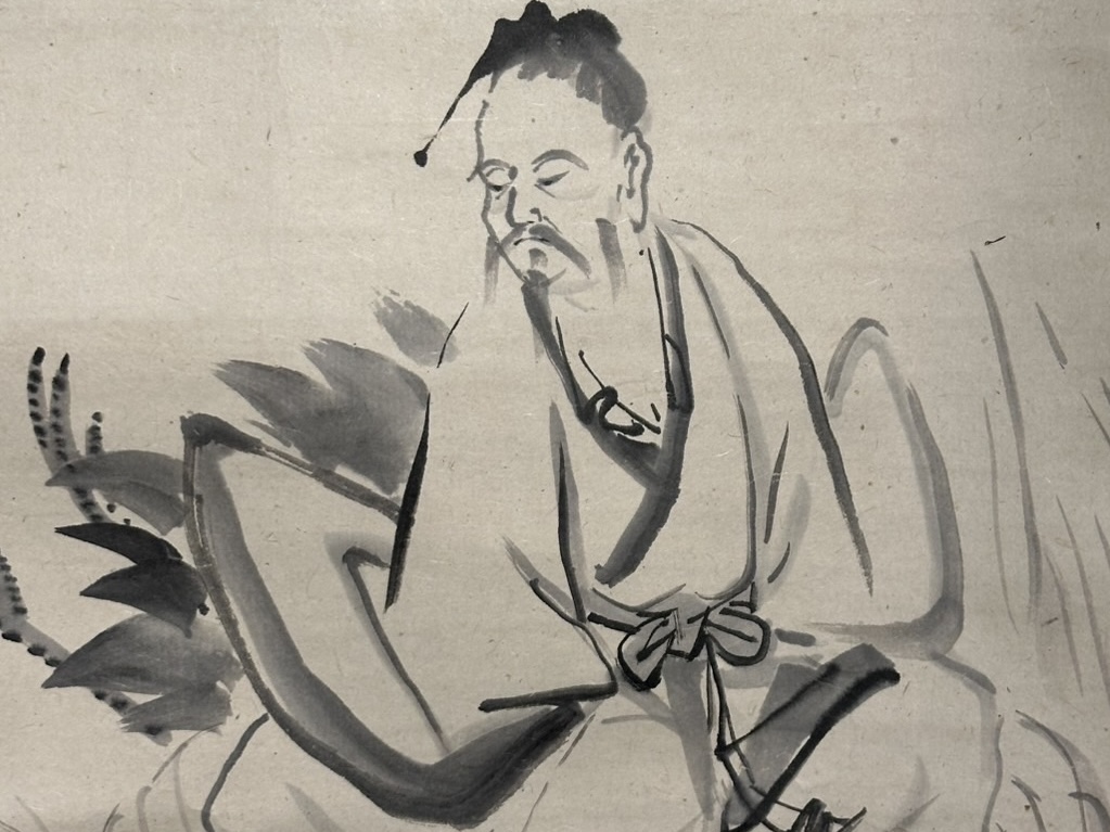 Two hundred years before this work, Kano Tsunenobu (1636-1713), a member of the Kano school of the early Edo period (1603-1867), depicted Fei zhang fang reading a scroll while riding on a crane. It is believed that this painting by Tsunenobu was circulated as a powderized version and gave birth to many other paintings of Fei zhang fang in later generations.
