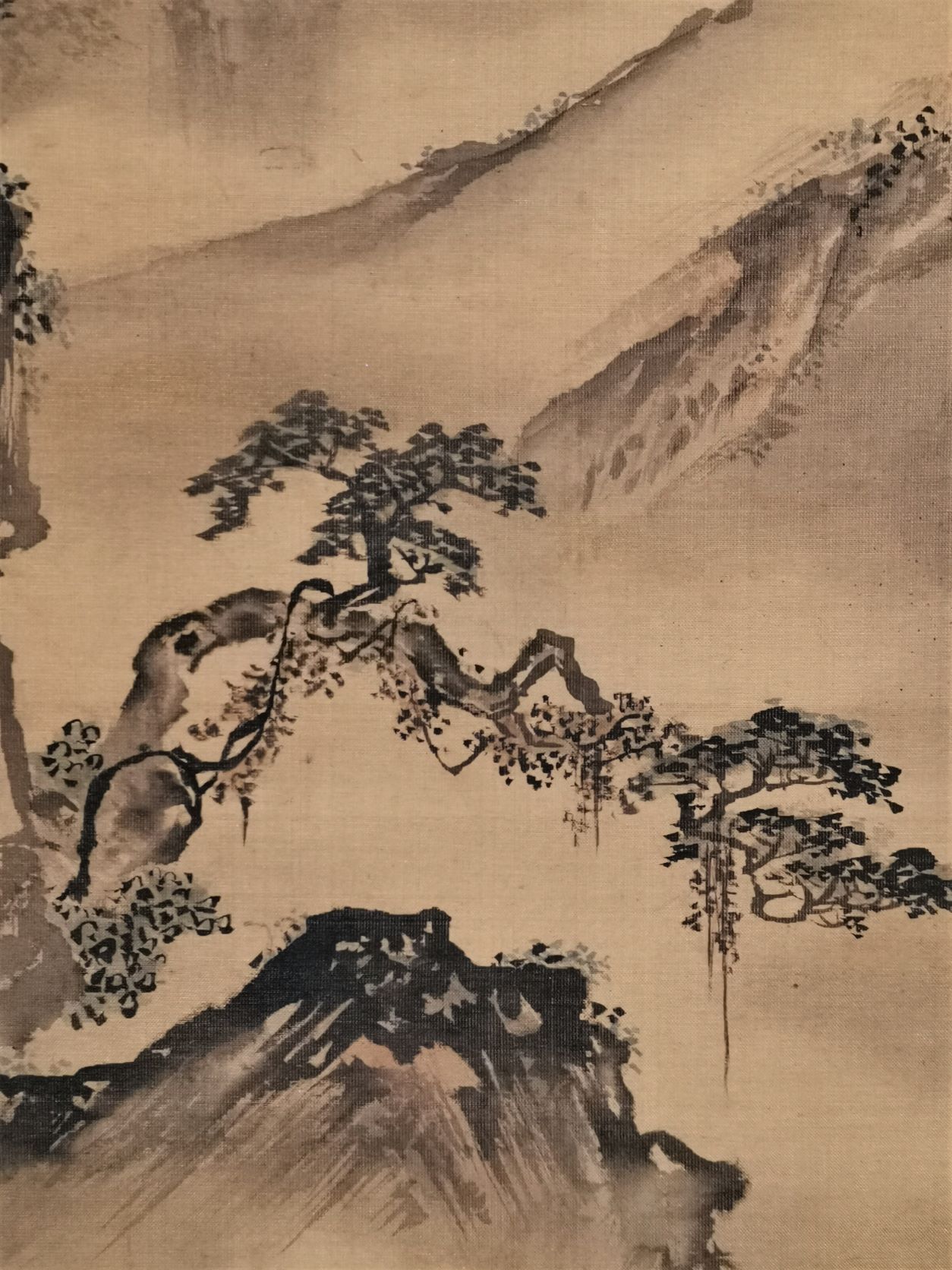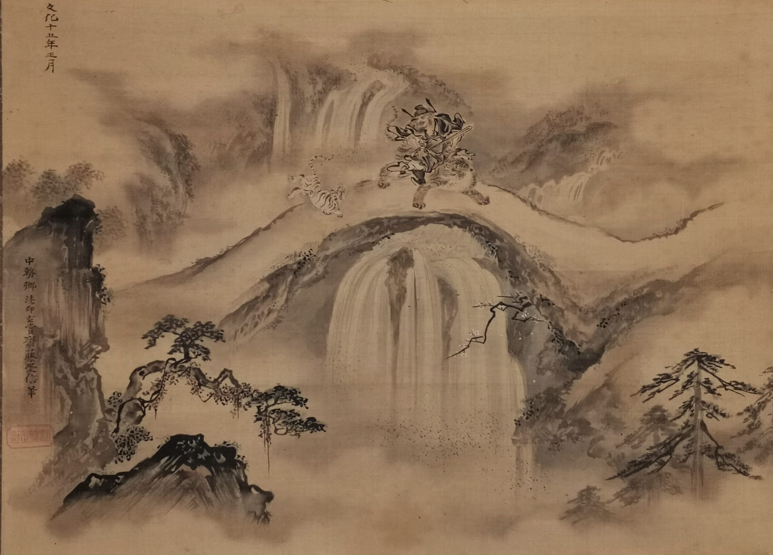 Kano Naganobu(1775-1828) was the eighth head of the Kano family in Kobikicho, and served the Shogun for two generations, Ieharu and Ienari. He created a style of painting that incorporated the techniques of the Nagasaki School and Nanpin School, as well as Yamato-e, and established the golden age of the Kobikicho Kano School. The signature on this work indicates that it was painted after he was appointed hōin.