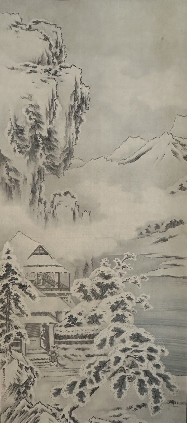 Kano Eigaku (1790-1867) was the ninth head of the Kyoto Kano family. He revitalized the Kano family by introducing the painting techniques of various schools into the tradition of Kano painters such as Sanraku and Sansetsu, and pioneered a new style of painting. In recent years, exhibitions focusing on him have been held, and he has been the focus of much attention.
