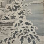 This painting depicts a hermitage quietly standing by a lake in the deep snowy mountains. The snow piled thickly on the leaves and branches of the trees and the ripples on the surface of the lake are beautifully detailed, and the clear snowy mountain air can be felt through the picture.