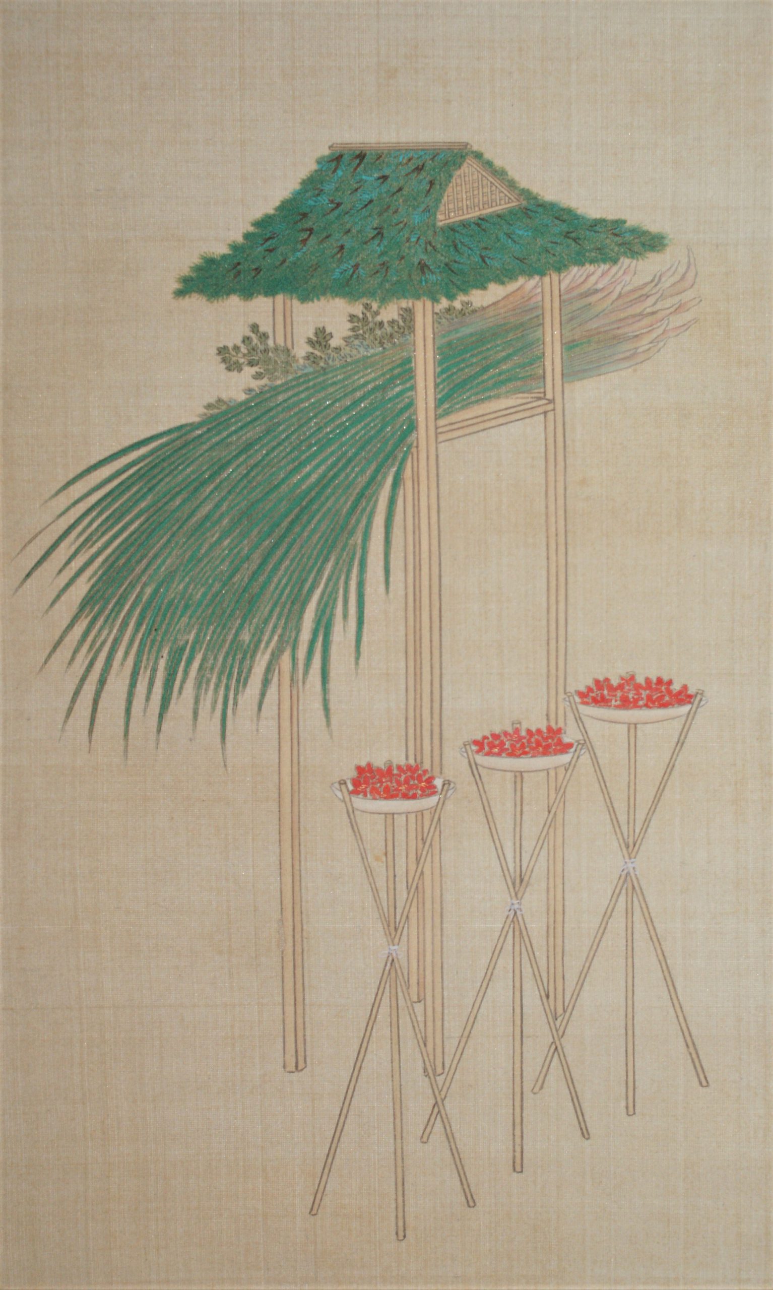 Gosekku refers to the five days of the year: Jinjitsu(January 7),Joshi (March 3), Tango (May 5), Tanabata (July 7), and Chou-you (September 9). During the Edo period (1603-1867), they became important ceremonial days for the shogunate. Depicted here are offerings and foods related to each of these festivals.