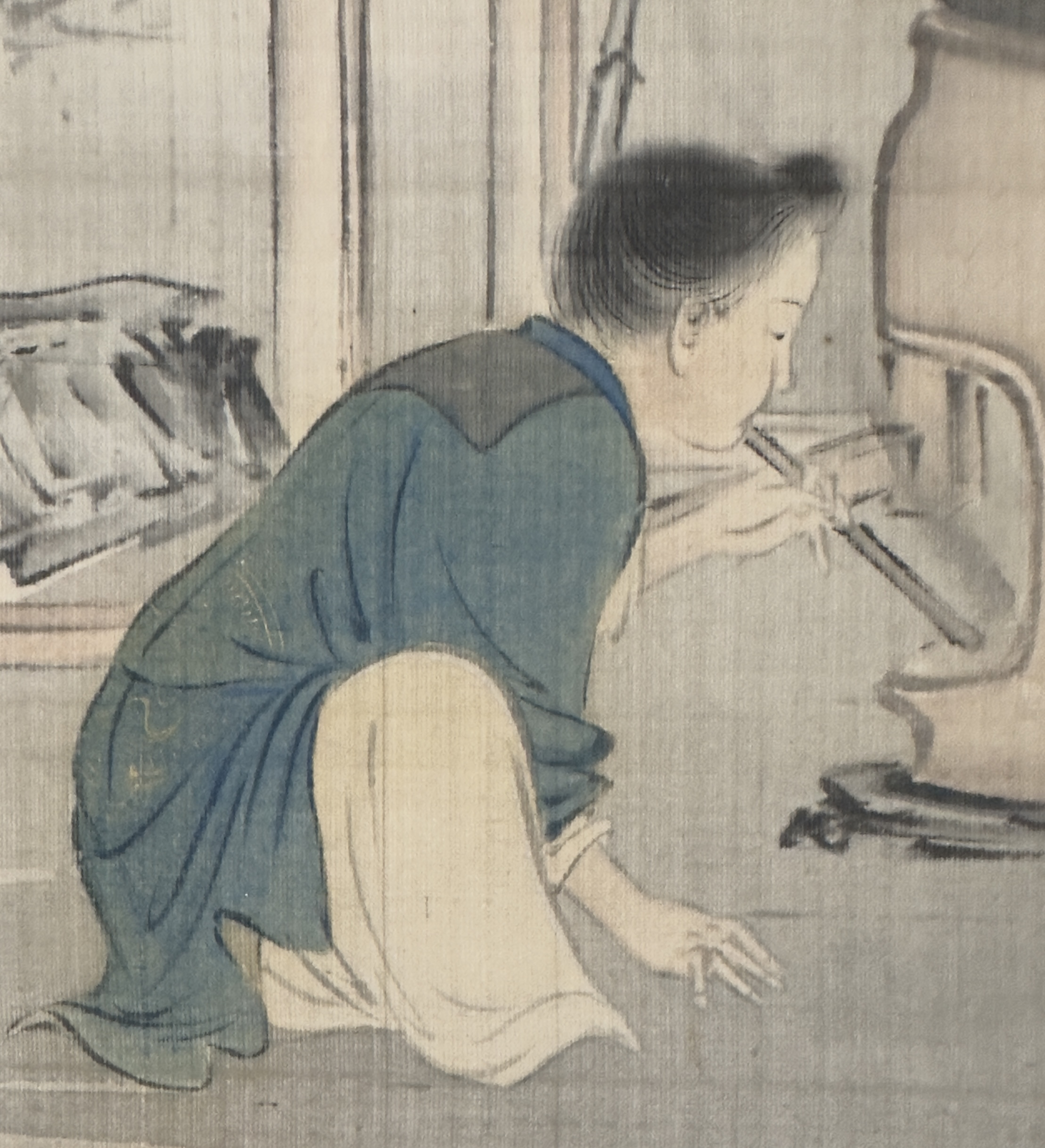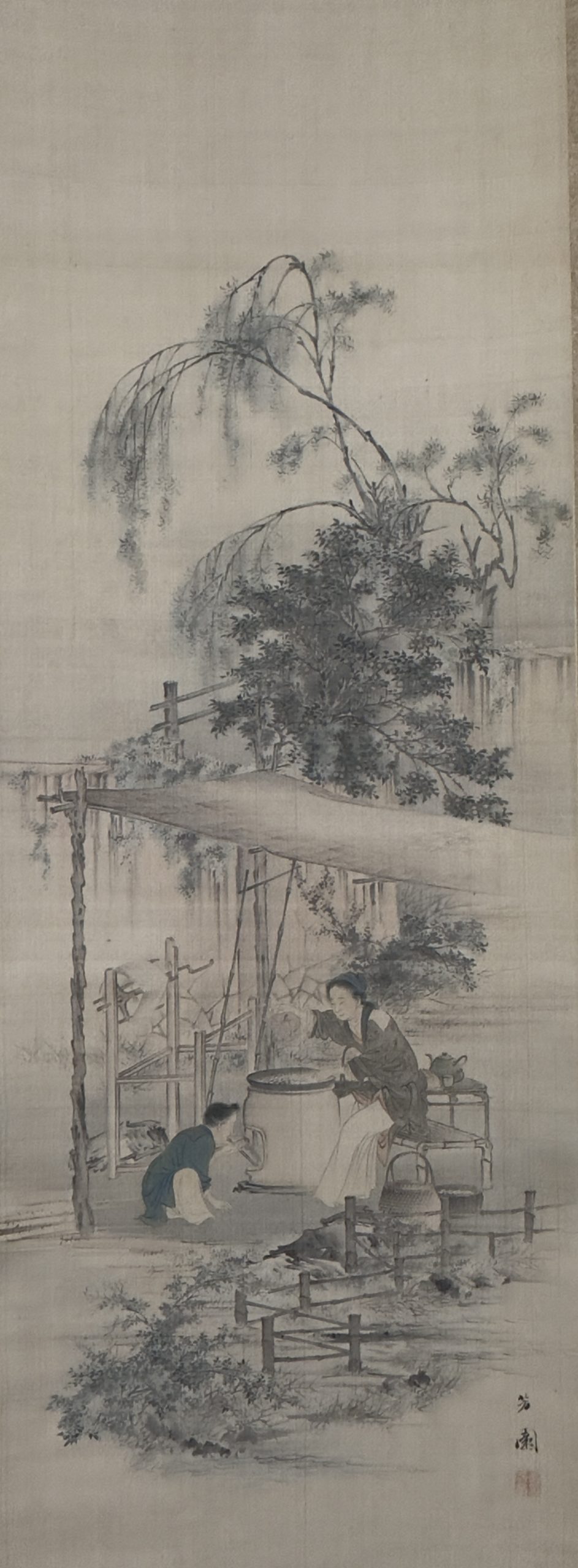 | Title | “Two Figures Spinning the Yarn”/color on silk |