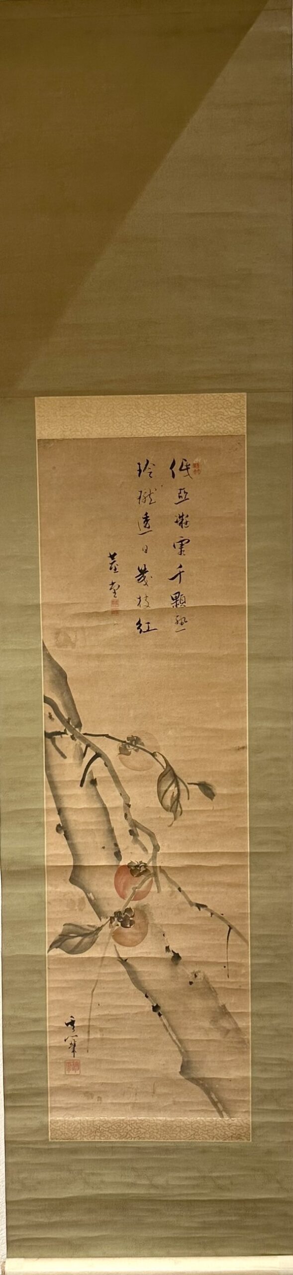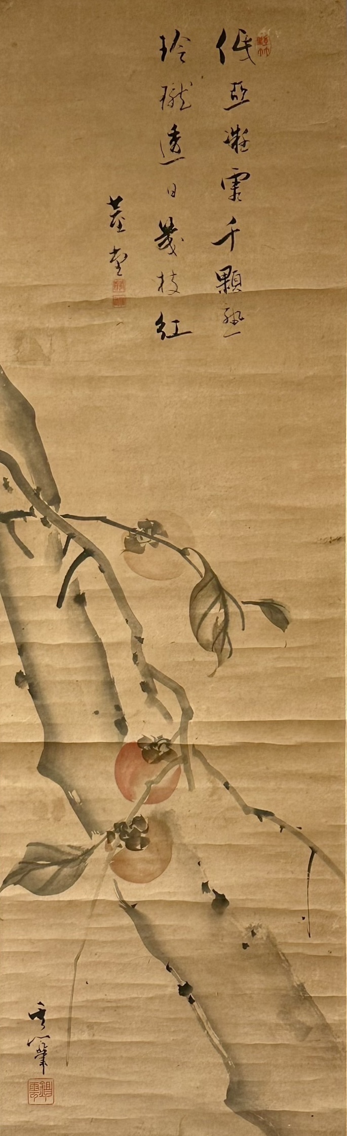 With a light and elegant touch, the artist depicts persimmons in abundance. The artist is Suzuki Kiitsu (1796-1858), a representative painter of the Edo Rimpa school.