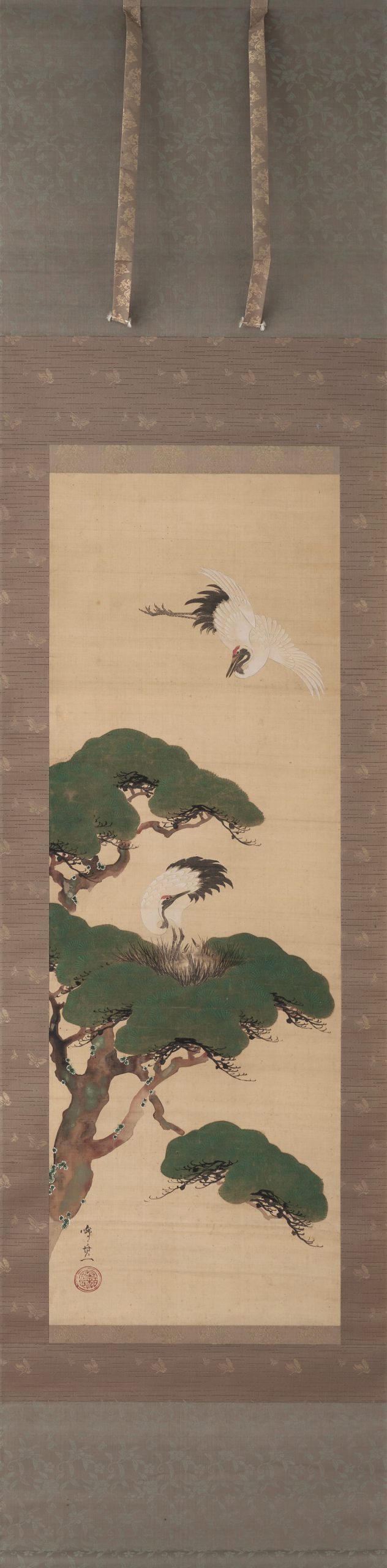 Suzuki Kiitsu “Pine and Crane Parent and Child”