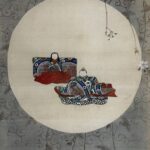 This painting depicts “Kan’ei Hina”, a type of sitting doll manufactured during the Kan’ei period.