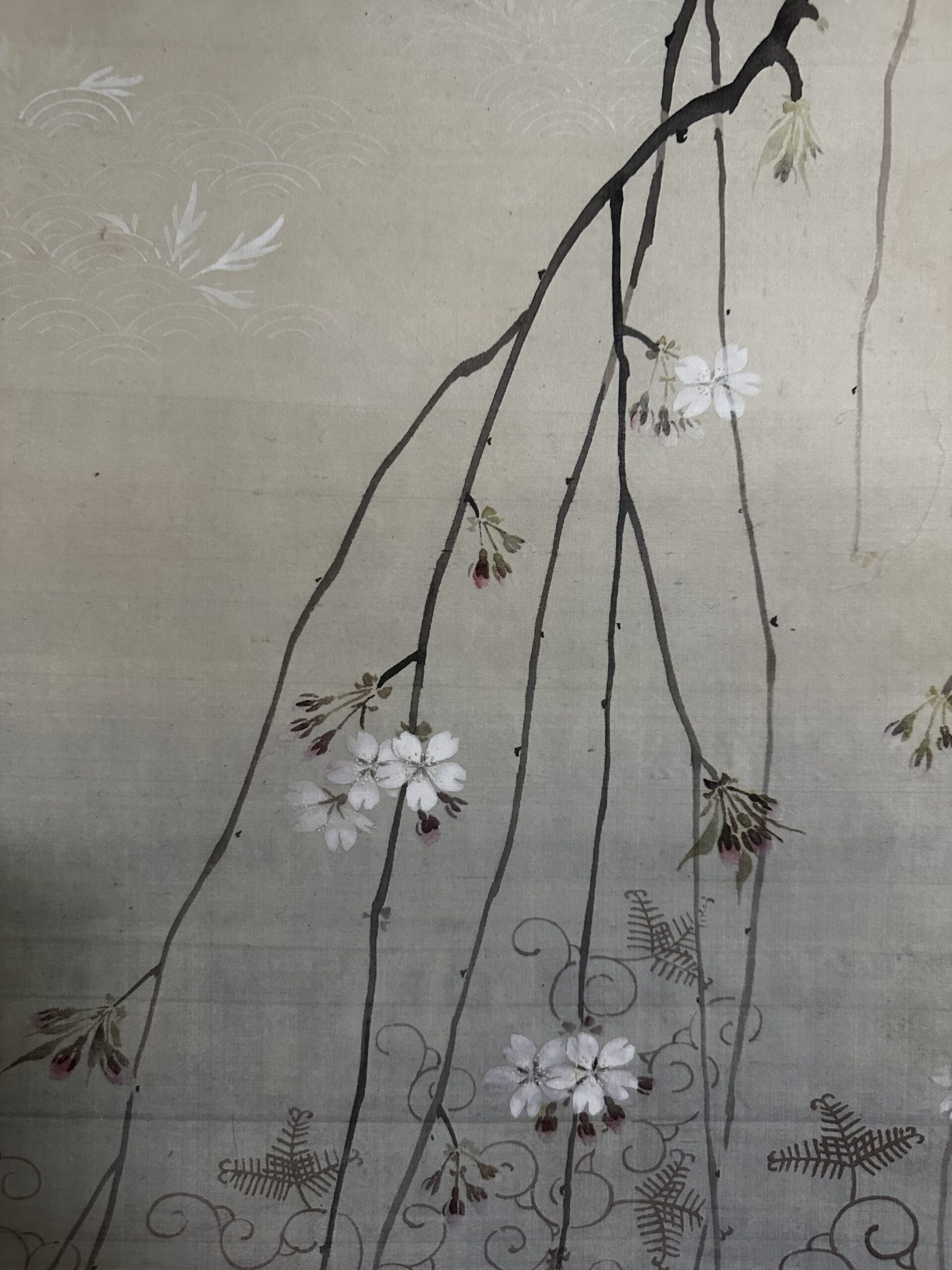 The blue ocean waves in gofun are also very beautiful, and Shuitsu’s taste shines through in this decorative and chic painting.